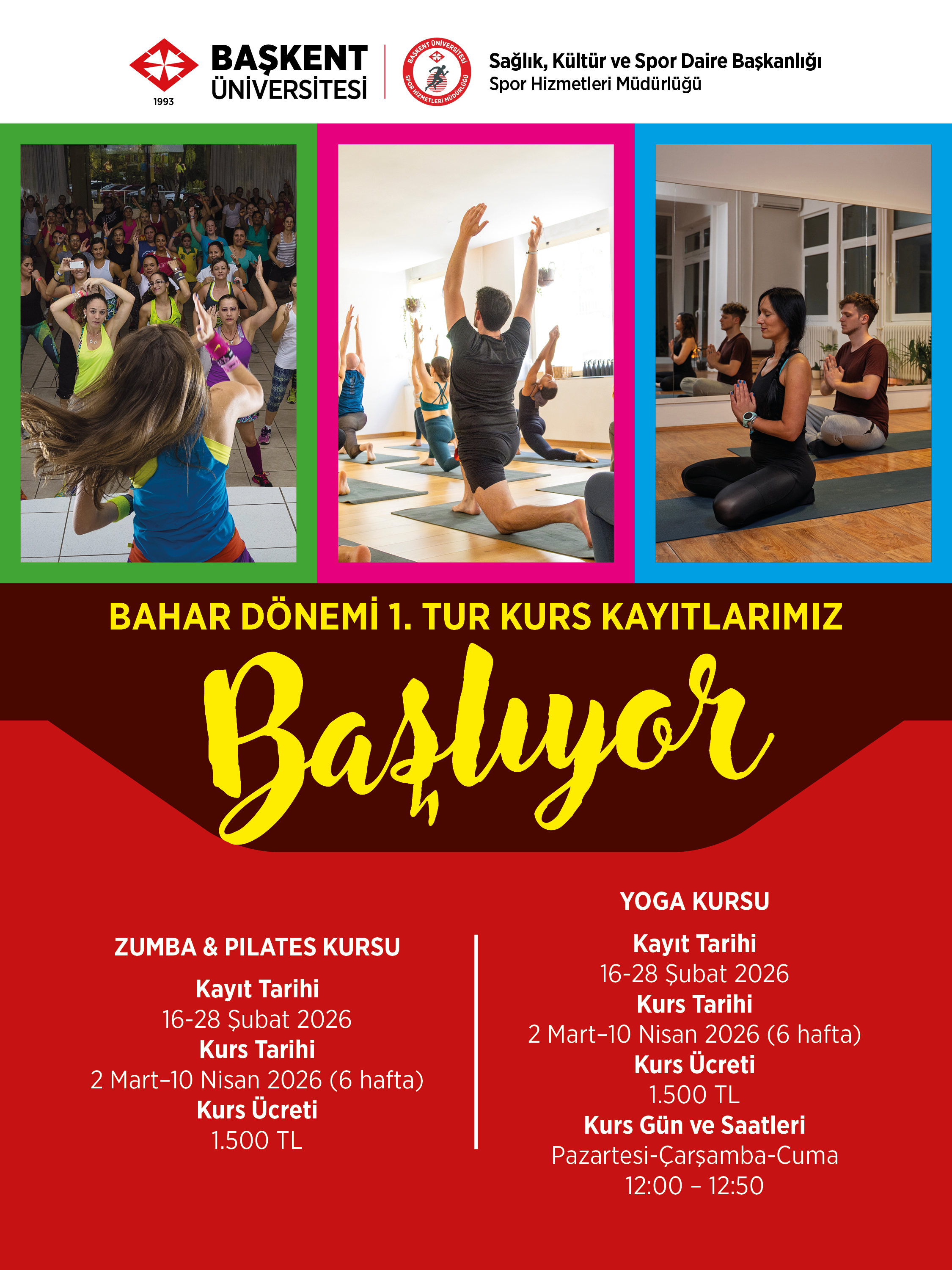 2025-2026 Akademik Yılı Bahar Dönemi Pilates & Zumba ve Yoga Kurs Kayıtları